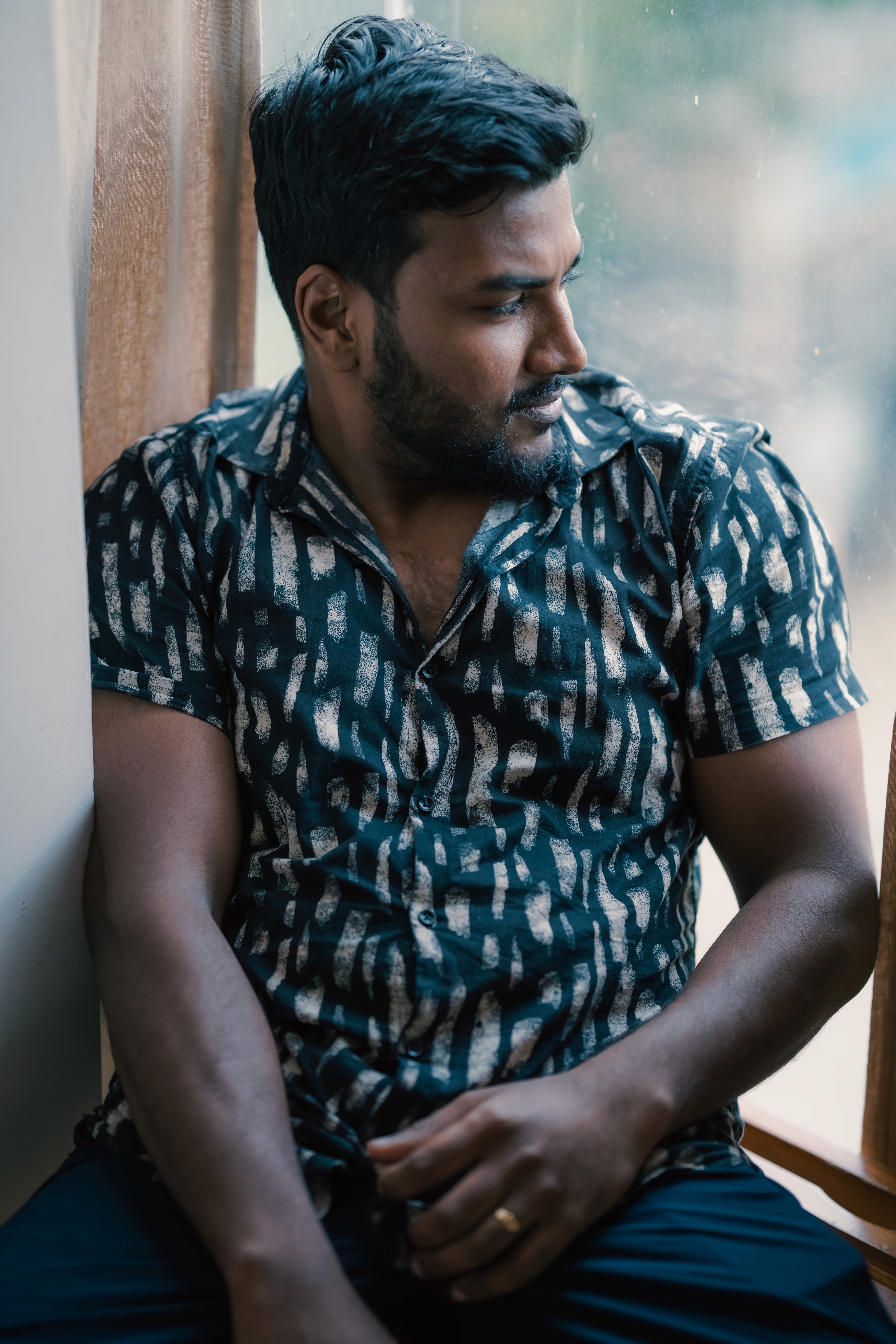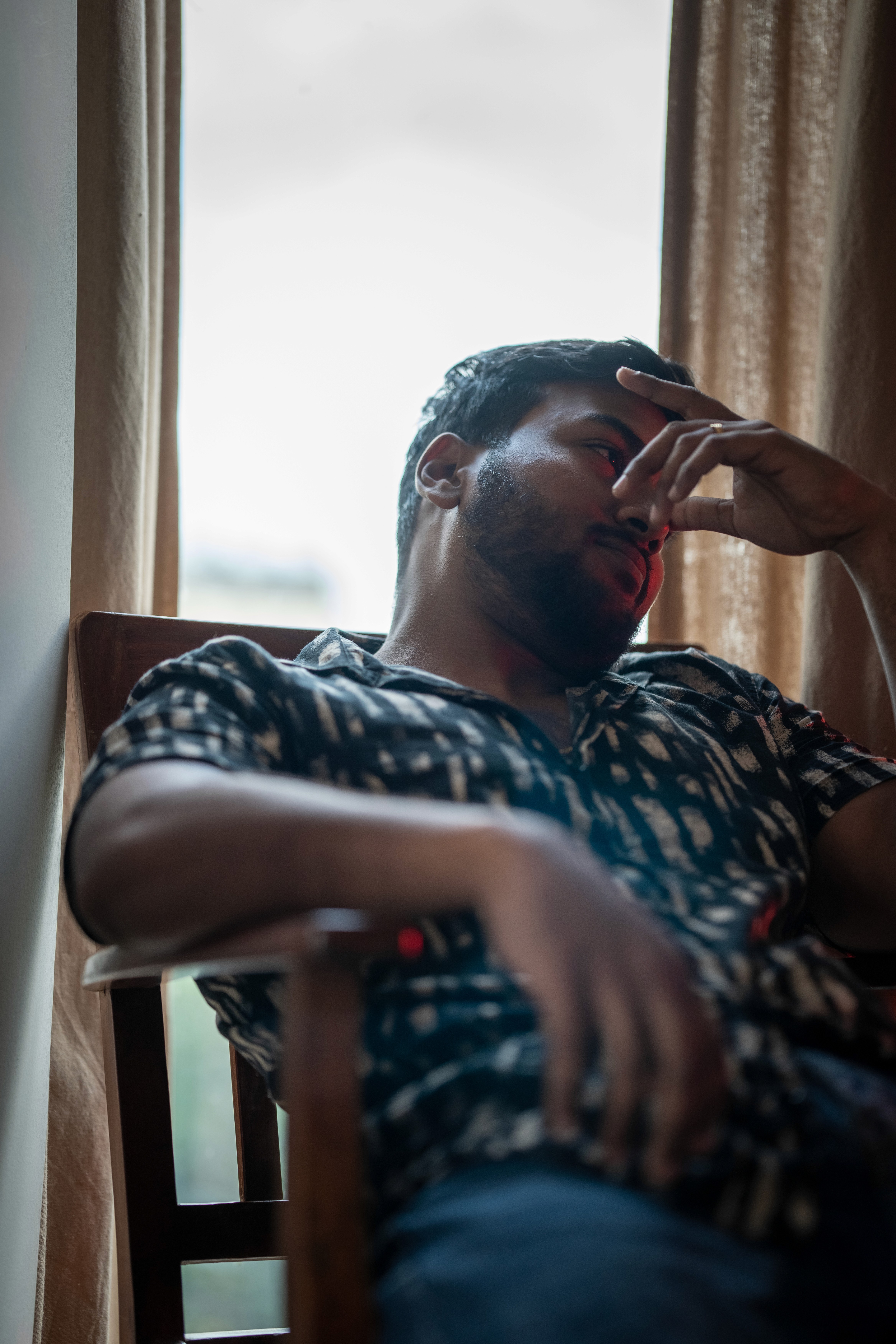 Portrait session in Bengaluru in a closed Airbnb.